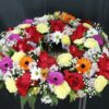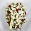 Corona tonos pastel, con rosas blancas y rosas, tamaño grande. Cinta de condolencias incluida