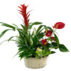 Composición en una cesta de 2 plantas: anturium, broemelia o guzmania tamaño grande y tamaño medio (según disposición y temporada) Orquídea tamaño extra de 3 varas florales y 2 plantas de tamaño pequeño. (según disposición y temporada)